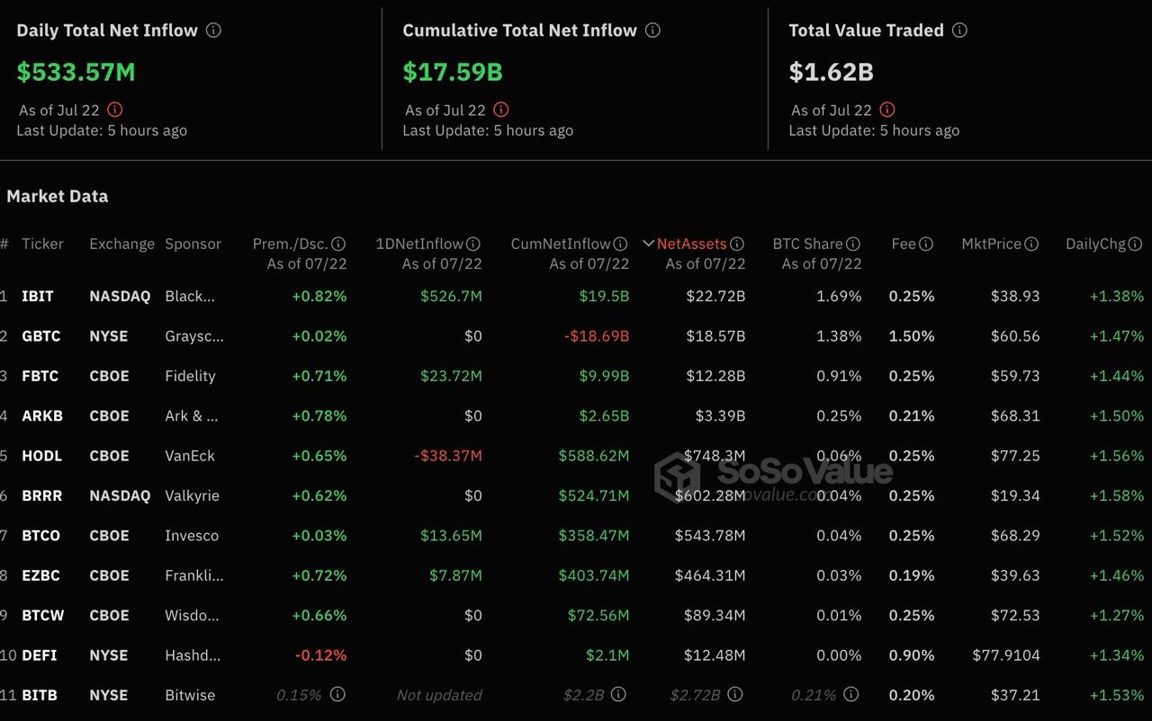 🚀 Вчера Bitcoin-ETF получили $533 млн притока, самый высокий показатель за последние 7 недель.