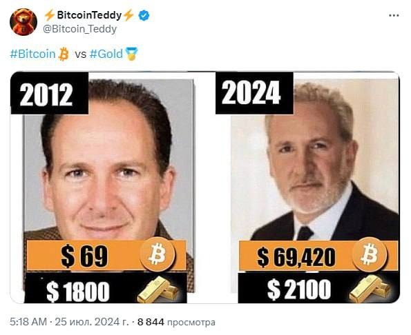Как изменилась цена Bitcoin и золота с 2012 года,
