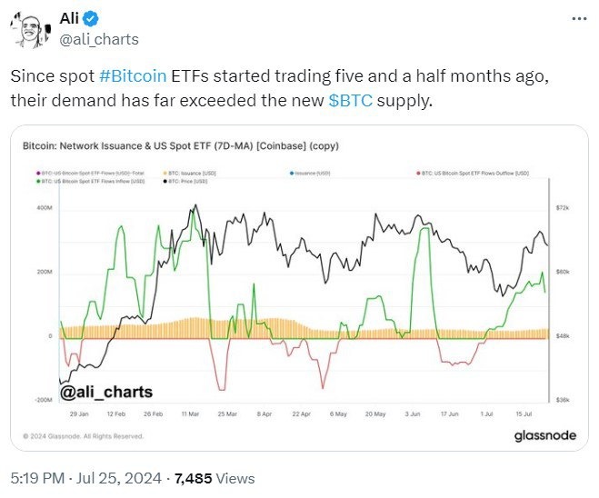 Новые денежные потоки оказывают более слабое влияние на ETH, чем на биткоин.