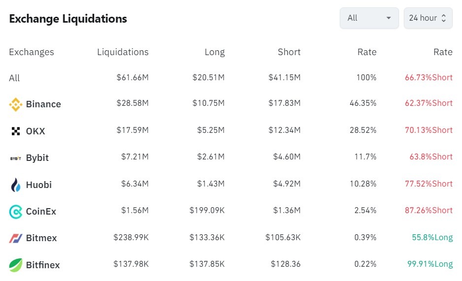 За последние 24 часа было ликвидировано 24 778 позиций трейдеров, общая сумма ликвидаций составила $62,72 млн.