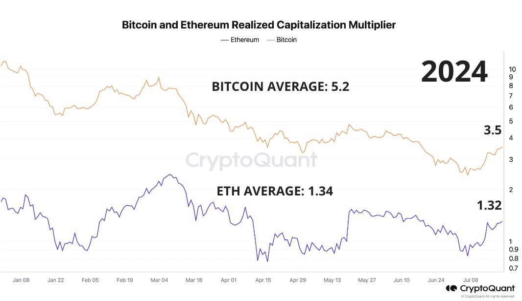 Новые денежные потоки оказывают более слабое влияние на ETH, чем на биткоин.
