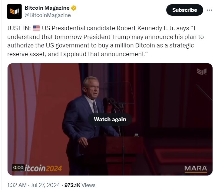 По его мнению, Трамп может объявить на конференции Bitcoin 2024, что правительство США купит первую криптовалюту в качестве стратегического резервного актива.