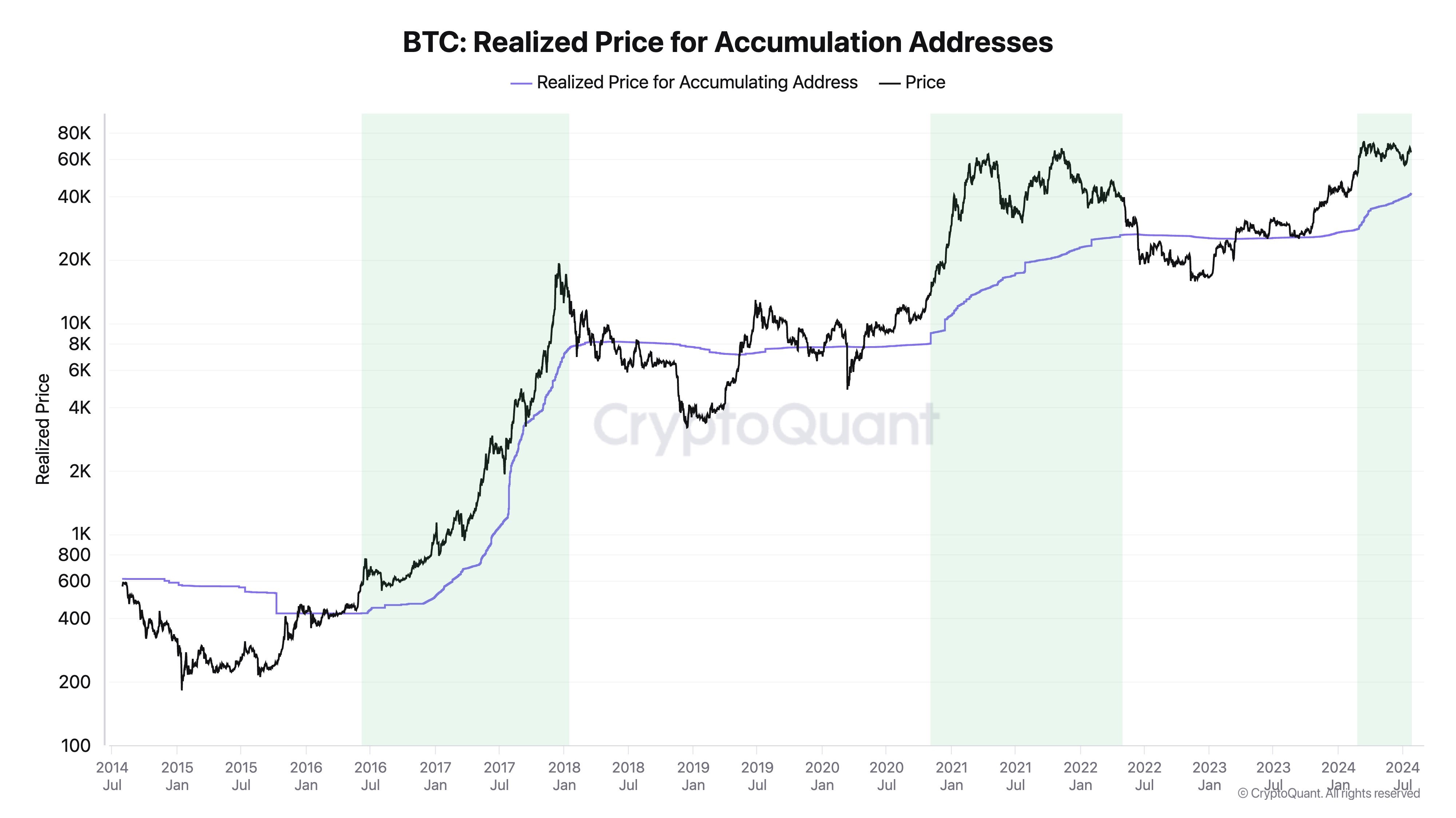 Киты получают прибыль во время бычьих рынков. Их продажа приносит новый капитал в адреса накопления, повышая цены реализации. В прошлых циклах периоды реализации прибыли составляли около 18 месяцев. В этот раз все началось 4 месяца назад.