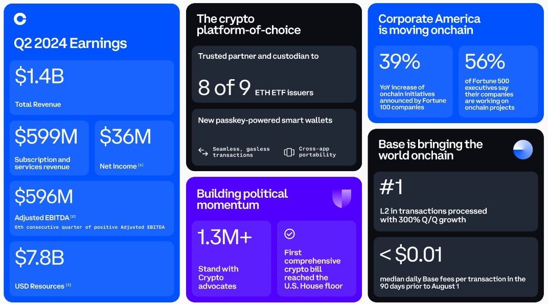 Акции Coinbase выросли на 3,2% после завершения торгов, когда были опубликованы последние финансовые результаты за второй квартал. В них сообщается о выручке в размере $1,4 млрд во втором квартале, а также о значительном годовом росте объемов торговли криптовалютами.