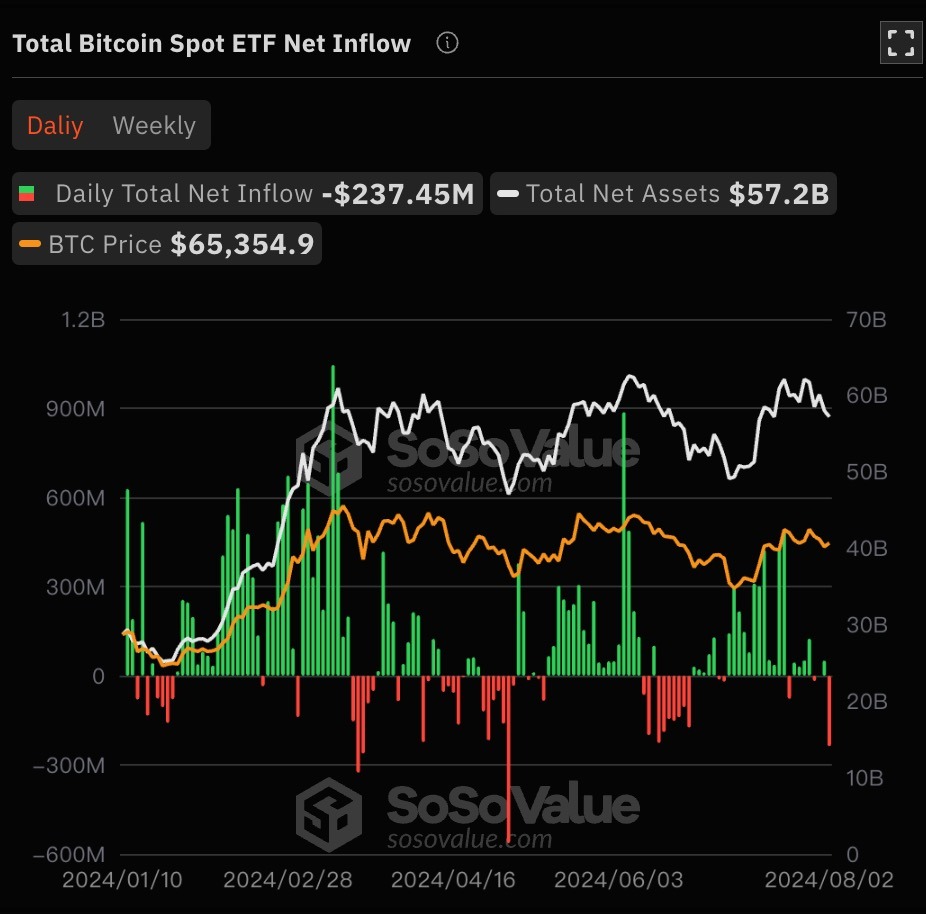🔸Ежедневный общий чистый отток: $237,45 млн