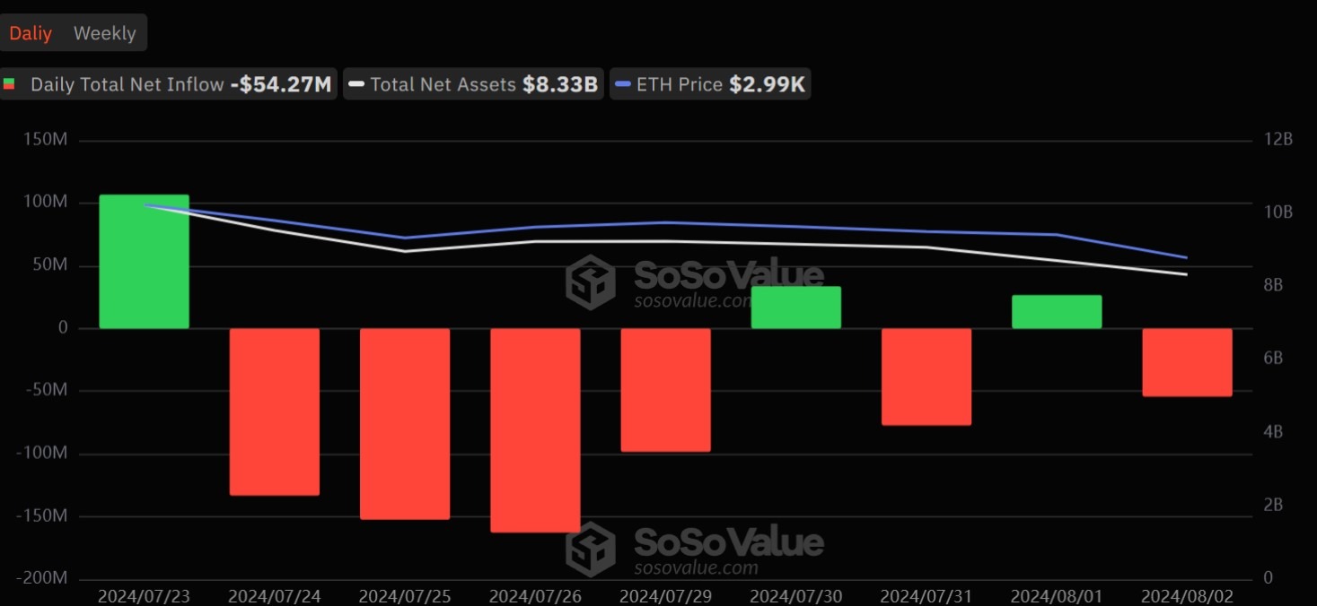 Общий чистый отток средств спотового ЕТН-ETF составил $54,2704 млн