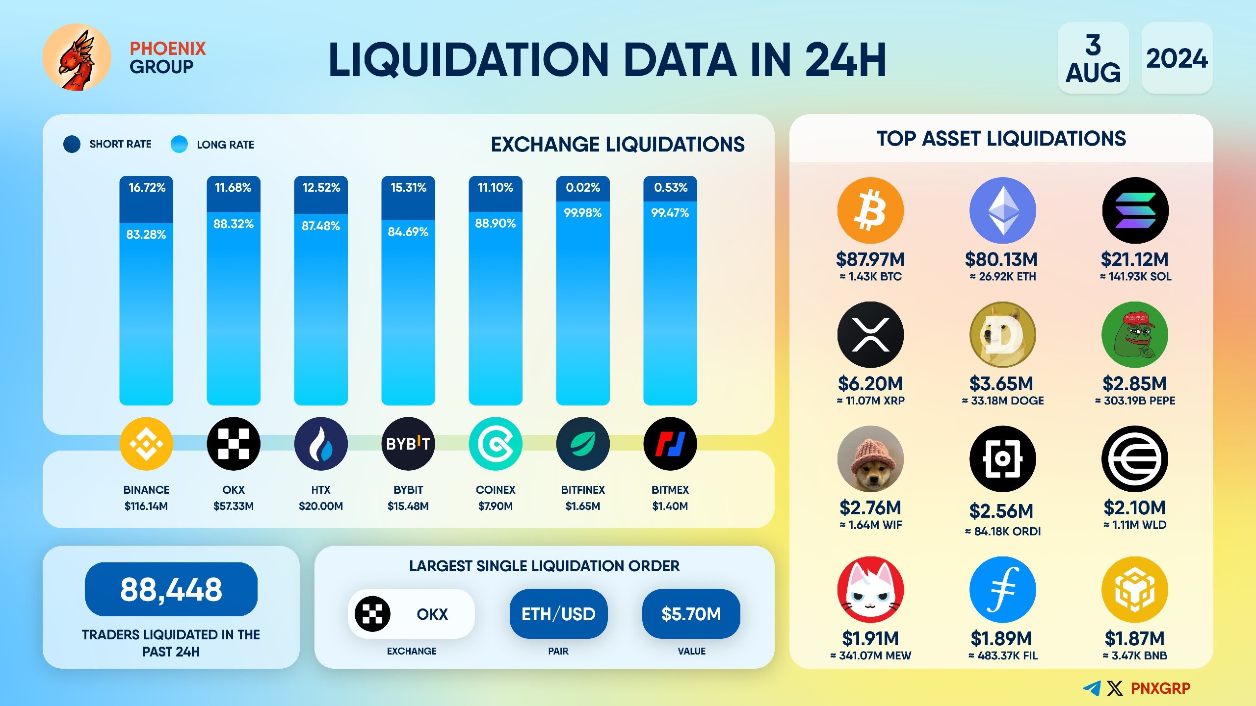 Крупнейший ордер на ликвидацию был зарегистрирован на Huobi — ЕТН-USD стоимостью $5,7 млн.
