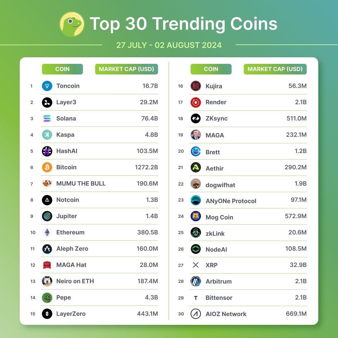 Топ-30 популярных монет на CoinGecko 🦎
