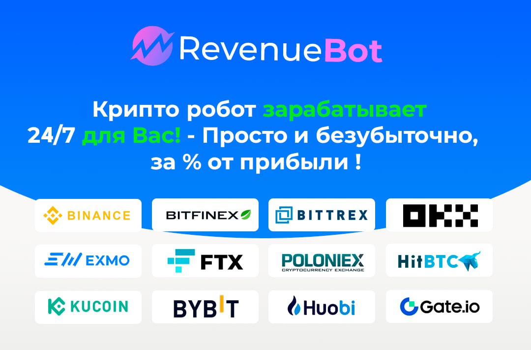 Для тех, кто искал платформу для автоматизированной торговли, представляем RevenueBot. Бот предлагает торговые стратегии на многих популярных биржах, среди которых Binance, Bitfinex, Exmo, OKX, Kraken, Bitget, Gate.io, Bybit, Huobi.