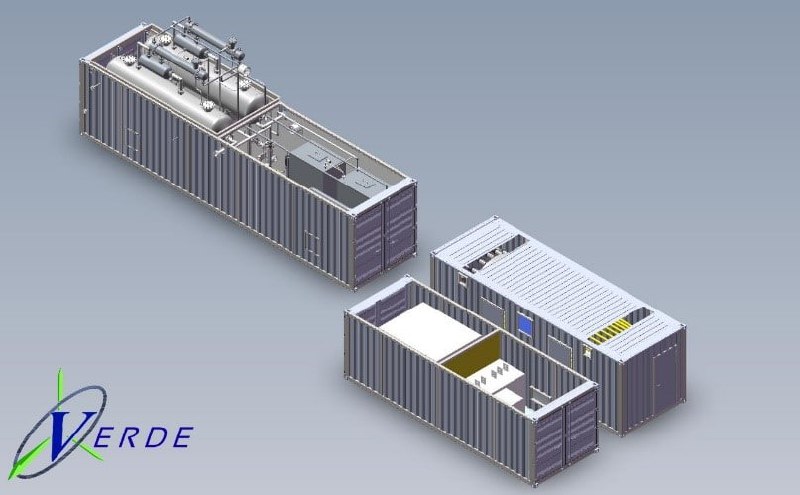 🔋 Американская компания Verde представила модульный водородный электролизер мощностью 5 МВт для производства «зеленого водорода». Система оснащена передовой запатентованной технологией производства H2 с помощью электролиза воды и занимает всего 2 девятиметровых и 1 двенадцатиметровый контейнер. Технологическое решение может иметь модульную структуру от 20 МВт до 500 МВт и даже более. Производительность – 2 тонны «зеленого» водорода в сутки, а максимальное давление на выходе составляет 3 Мпа.