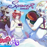 с нашими маскотами, минимум по пояс, с фоном сохраняя летнюю тематику. Это