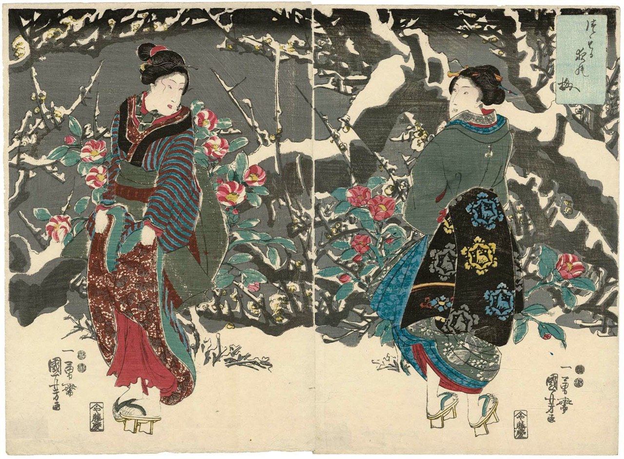 На фото: Утагава Куниёси. Слива в снежную ночь