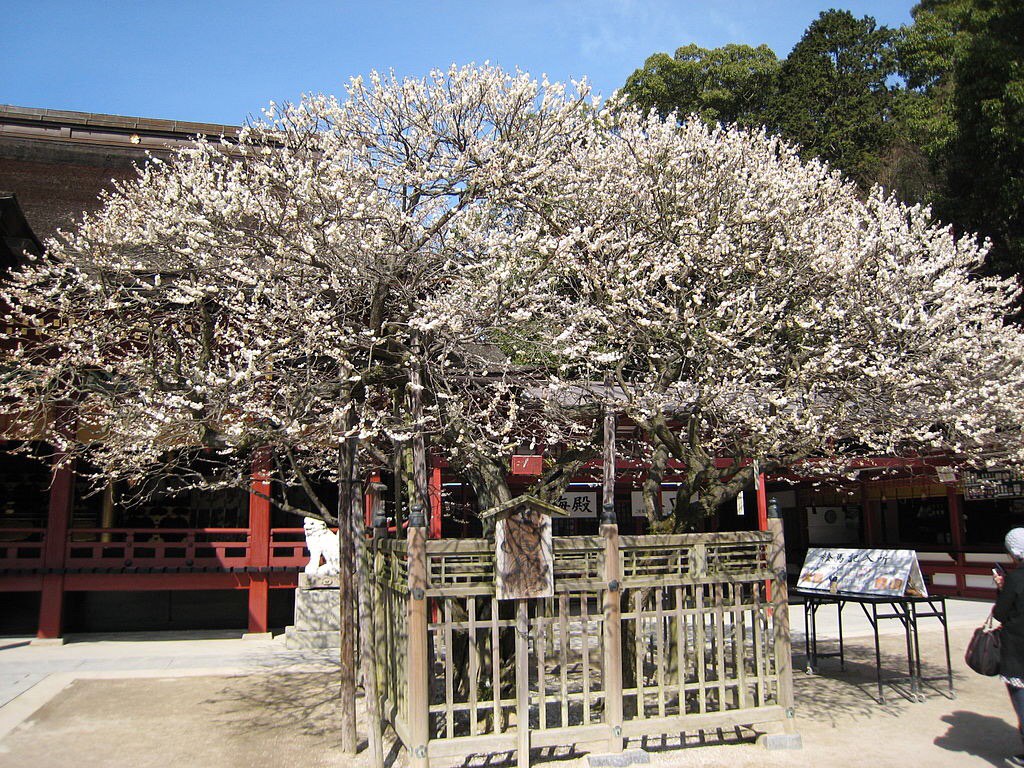Как гласит легенда, его любимая слива довольно прямолинейно восприняла призыв хозяина и за одну ночь перелетела из Киото на Кюсю в город Дадзайфу, куда сослали самого Митидзанэ.
