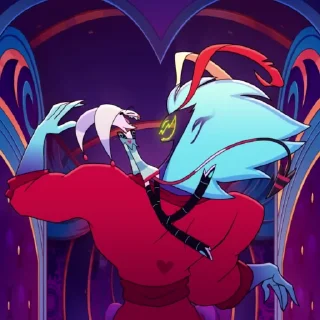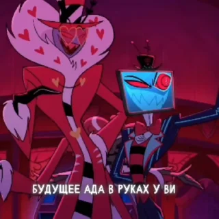 Энджел Даст — Настоящие имя Энтони. паук-демон с шестью руками, порно актёр. У него есть сестра по имени Молли,которая является ангелом пауком, и брат Арахнисс,тоже являются пауком демоном. Насчёт остальных членов его семьи неизвестно. Так же есть питомец по имени Толстый Наггетс – это свинка.Стикеры:
