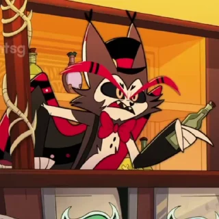 бармен на стойке в отеле хазбин.является антропоморфным птицеподобным котом-демоном,внешний вид говорит сам за себя-он любитель азартных игр и фокусов,белый мех на морде и серый по всему телу,имеет большие красные брови,масти карт на ушах и крыльях,черный нос в виде сердечка.ненавидит свой кошачий облик и факт,что аластор владеет его душой