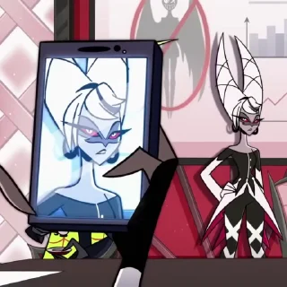 стройный демон с белой кожей, острыми белыми зубами и очень длинной шеей. Её глаза угольно-черные, без радужной оболочки и зрачков, а волосы окрашены как в серовато-белый, так и в серовато-розовый цвет. Она щеголяет короткими волосами, хотя их можно было бы завязать под шляпой, и, как и Аластор, всегда улыбается. Своим ростом она немного Аластора.