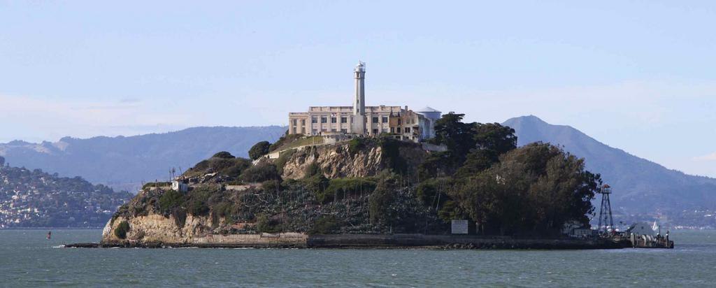 Алькатрас был первой в стране военной тюрьмой, в которой под жесточайшей охраной содержались такие знаменитые преступники, как Аль Капоне. Тюрьма находится на скале площадью 5 га, а ледяные воды пролива шириной 2,5 км с опасными течениями, акулами и сточными водами отделяют Алькатрас от побережья Сан-Франциско. Никому не удалось сбежать из Алькатраса живым. Долгое время остров служил предметом жарких территориальных споров с коренными народами. Поскольку содержание привезенных на остров охранников и продовольствие обходились в большую сумму, чем если бы заключенные жили в отеле «Ритц», в 1963 г. тюрьма была закрыта. С 1969 по 1971 г. остров занимали в знак протеста против американской оккупации коренных земель индейские вожди. Их противостояние с ФБР увековечено в выставках музея у причала и в граффити «Это земля индейцев» на водонапорной башне. Воду для растущих ныне кустарников и деревьев приходилось доставлять американским военнослужащим, которые содержались в здании, служившем до 1934 г. штрафной казармой. Тюрьма Алькатрас, наряду с мостом "Золотые Ворота", считается одной из основных достопримечательностей города