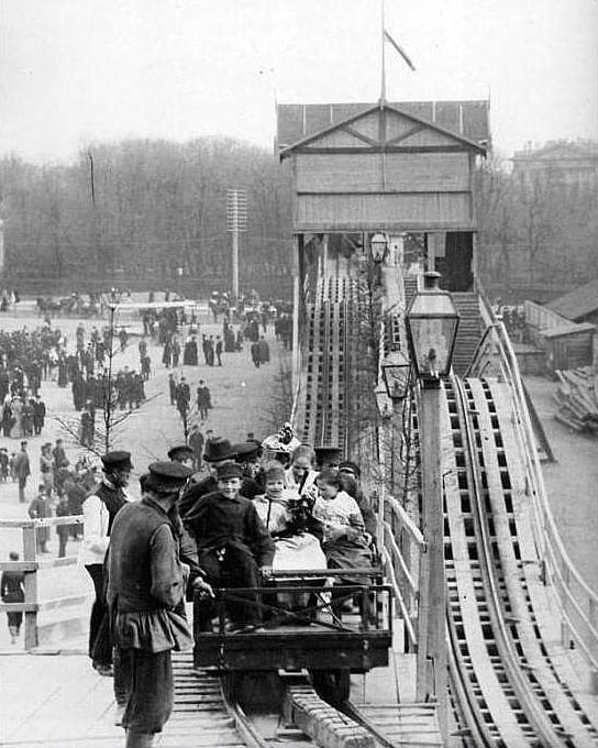 ​​Американские горки на Марсовом поле. 1895 г. Санкт-Петербург. "Американские горки" в России появились при Екатерине Великой за несколько лет до создания Соединенных Штатов.