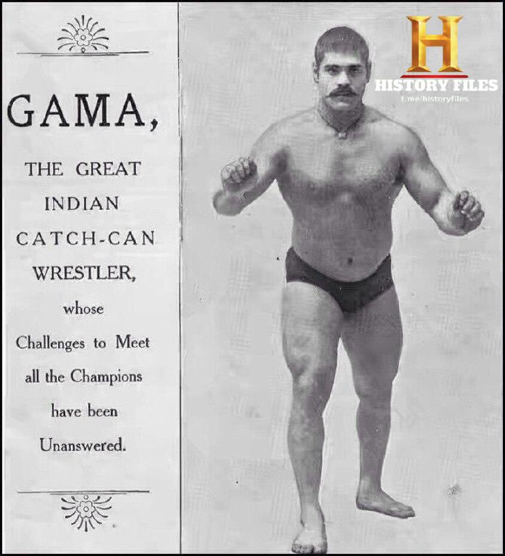 Большой Гама (1878 - 1960) -известный индийский и пакистанский борец,выступавший на борцовской арене в первой половине 20 века под псевдонимами "Gama Pehalwan" и "Ghulam Muhammad Butt", считается одним из самых величайших и непобедимых борцов всех времен и народов, неоднократный в тяжелом весе победитель чемпионата Индии и мира, за всю свою карьеру он ни разу не был побежден, есть история о том, как Гама в 1902 году поднял камень весом 1200 кг, этот камень выставлен на всеобщее обозрение в Барода - музее (Sayaji baug - западная часть Индийского штата Гуджарат). Стоит отметить, что популяризатор и реформатор в области китайских боевых искусств, гонконгский и американский киноактёр, режиссёр, сценарист, продюсер, постановщик боевых сцен и философ - Брюс Ли был большим поклонником Гама, который и позаимствовал в своих тренировках методику Великого Гама, известно, что в своих ежедневных тренировках Великий Гамм, кроме борцовских приёмов 5000 раз приседал и отжимался 3000 раз, и так он трудился каждый день.