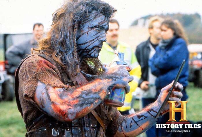 ⚡️Мел Гибсон наносит себе грим на съемках "Храброго сердца", Шотландия, 1994 год.