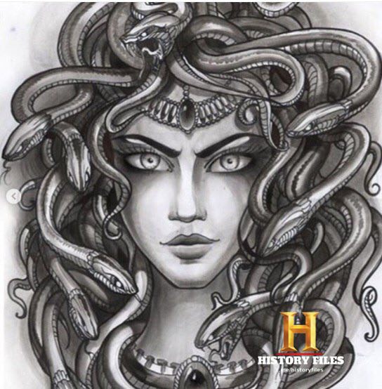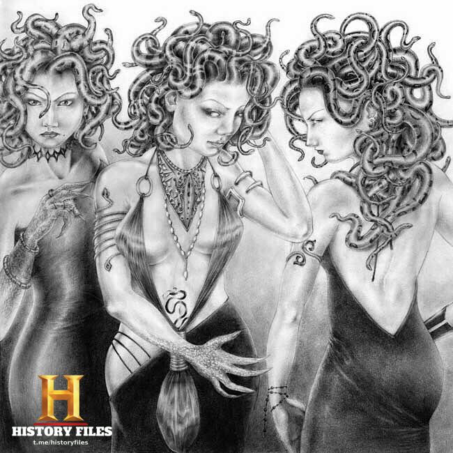 ⚡️Горгона Медуза – мифологическое чудовище с женским лицом и живыми ядовитыми змеями вместо волос. Взгляд этой жуткой женщины обращал человека в камень. В общем понимании горгона в древнегреческой мифологии означала змееволосую женщину, обладавшую магической силой. Всего горгон было три: Эвриала, Сфено и Медуза. Все они являлись дочерями бога бурного моря Форкия и его жены – богини морской пучины – Кето. Из трёх горгон Сфено и Эвриала считались бессмертными, а вот младшая сестра Медуза была смертной. Согласно версии древнеримского поэта Овидия, вначале младшая сестра была обыкновенной красивой девушкой. В неё влюбился Посейдон, но предмет его страсти отверг все ухаживания.