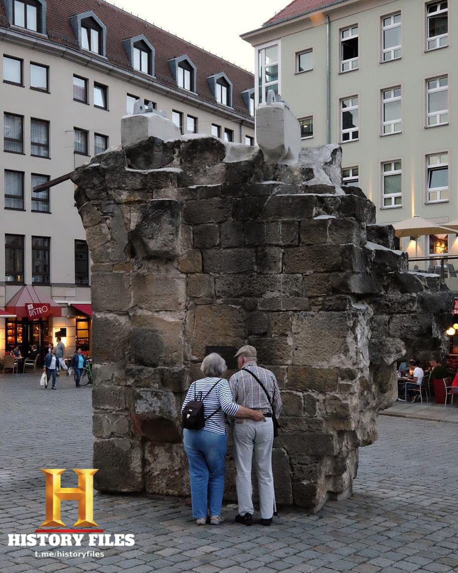 ​​Фрагмент собора Фрауэнкирхе, оставленный нетронутым при реставрации Дрездена как напоминание о бомбовых ударах, нанесенных британской авиацией 13-15 февраля 1945 г.