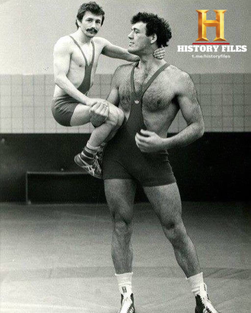 ​​⚡️На фото: два борца из польской олимпийской сборной. Слева Ян Фаландис (рост 1,56 м), справа Адам Сандурский (рост 2,14 м). Снимок сделан во время Олимпиады-80 в Москве. Сандурский тогда выиграл бронзу в весовой категории свыше 100 кг.