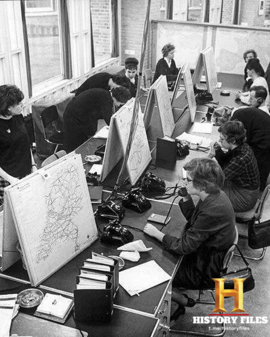 ⚡️Сотрудники горячей линии, куда любой желающий мог позвонить и узнать, как добраться в нужное место. 1963 г