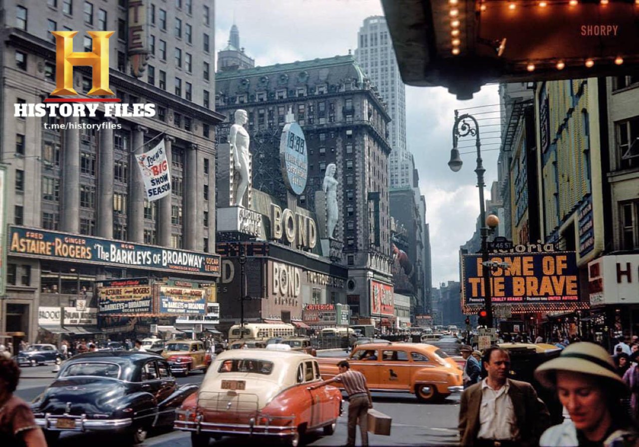 ⚡️Бродвей на Таймс-сквер, Нью-Йорк, 1949 год.