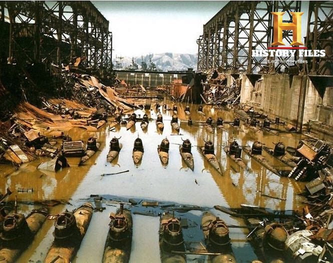 На фотографии вы видите их уже брошенными и одичавшими на разрушенной верфи.