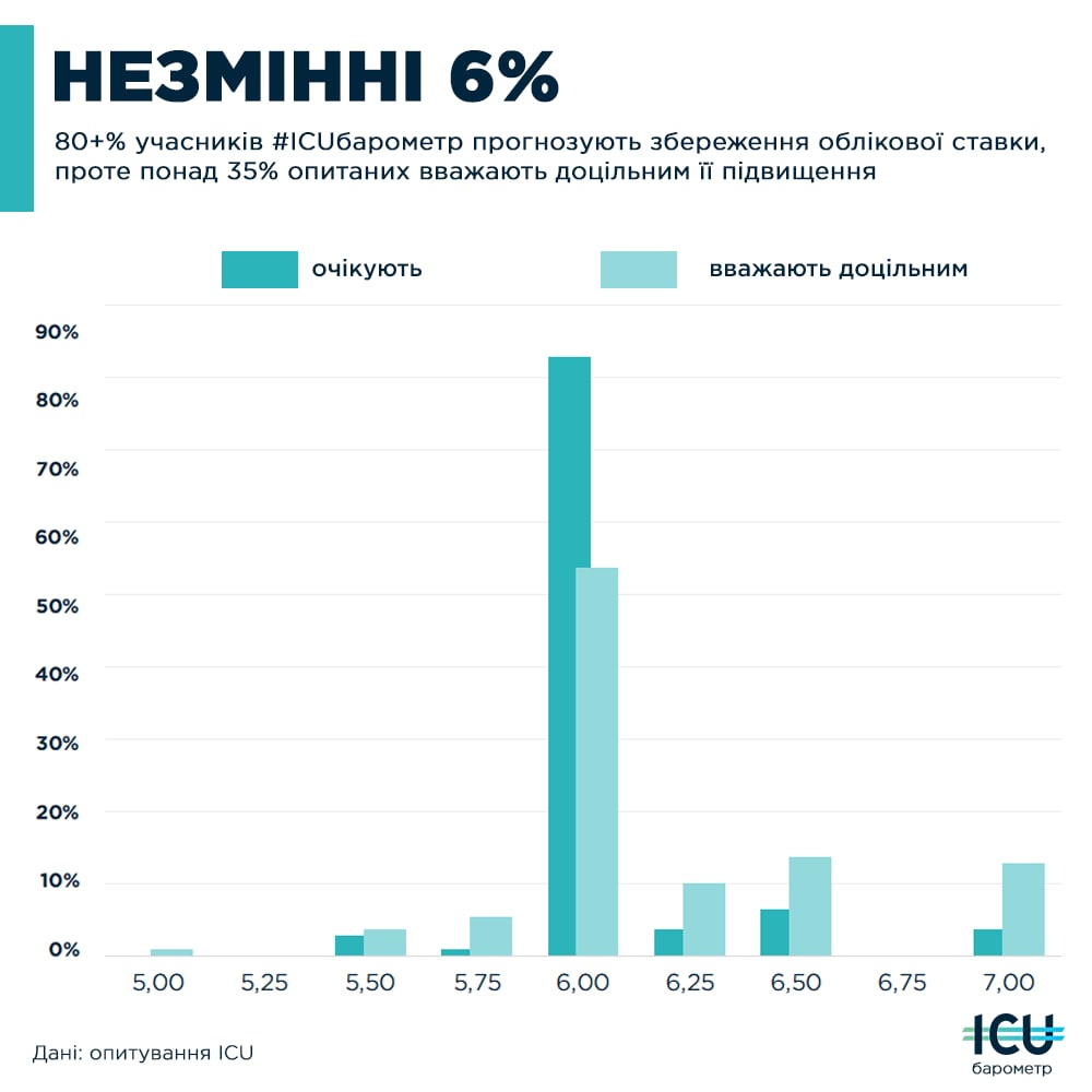 С - стабільність. Саме її, на думку опитаних #ICUбарометр, вкотре обере правління НБУ та збереже ставку на історичному мінімумі в 6%.