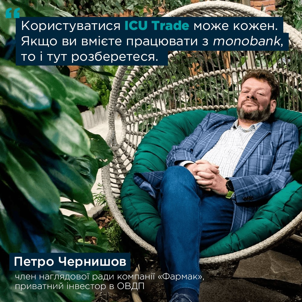 ➡️ Я був серед тих, хто тестував онлайн-платформу торгівлі ОВДП ICU Trade ще до її запуску в жовтні 2020. Поки що такого самого сервісу я не бачив більше ніде в Україні. Можна просто заходити в особистий кабінет і торгувати ОВДП. Натискаю кнопку «Вивести гроші» – і наступного дня вони вже на моєму банківському рахунку.