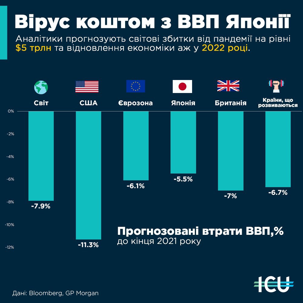 Один неправильний кажан і бум - понад $5 трлн до побачення. Саме стільки, на думку аналітиків JPMorgan Chase, втратить світова економіка в найближчі два роки через пандемію. А це небагато-немало на рівні річного ВВП Японії.