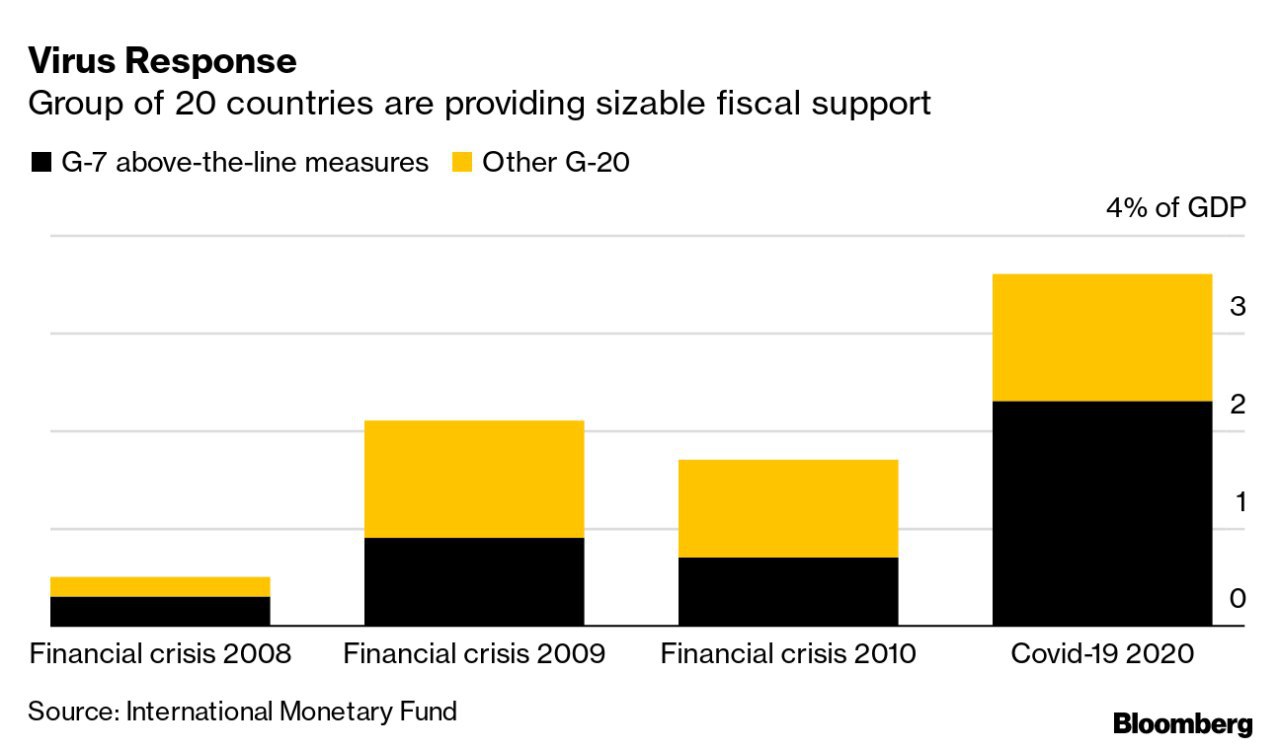 За даними МВФ, країни G20 витрачають 3,5% ВВП на заходи протидії коронавірусу. Це значно більше, аніж в період кризи, яка розпочалася у 2008 році.