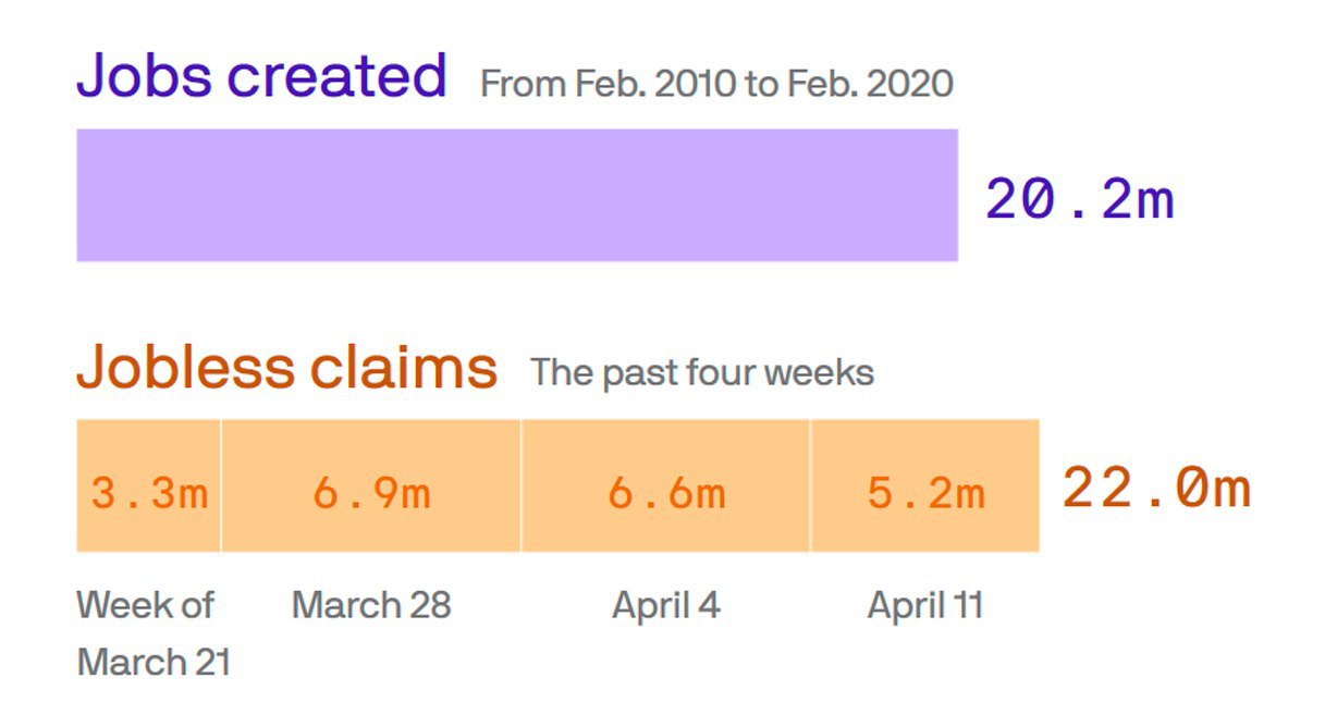 Зі старту активної фази карантину у США (два останні тижні березня та перші два тижні квітня) запити на отримання допомоги по безробіттю подали понад 22 млн американців.