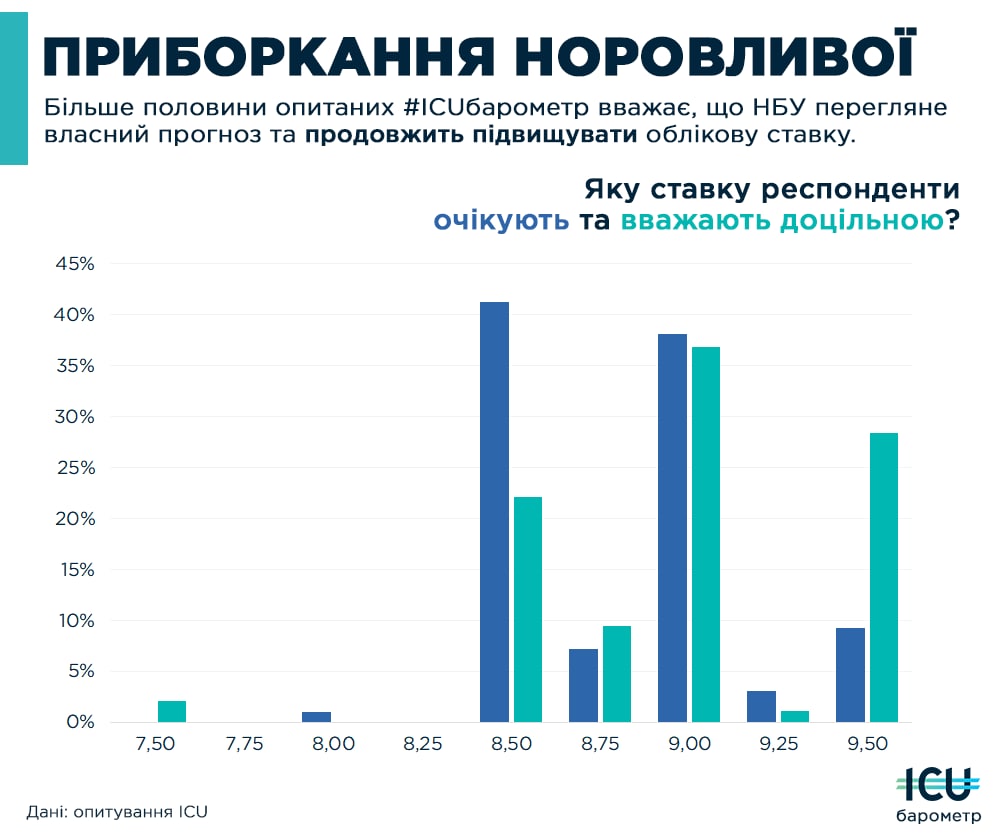 Щодо того, наскільки ставка зросте, голоси переважно розділилися між 9.5% та 10%. Більшість очікує поступове підвищення, але на місці регулятора діяла б рішучіше.