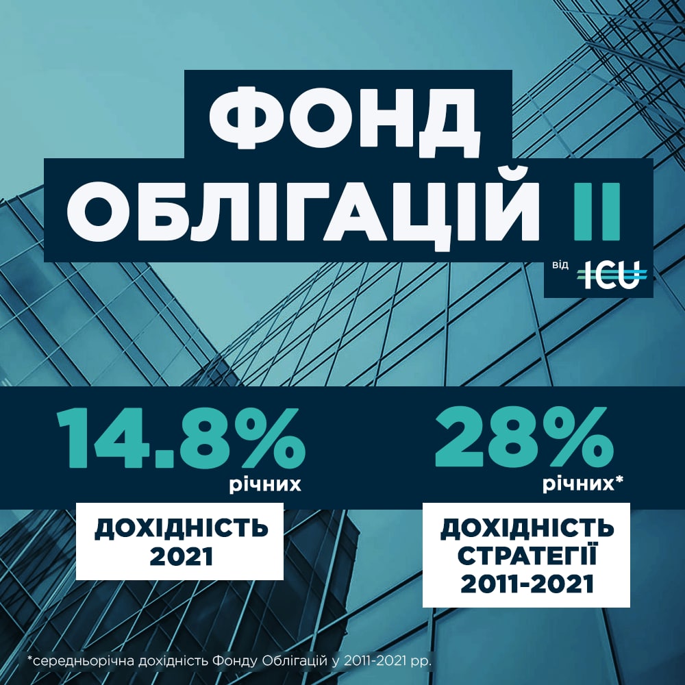 Надійно та дохідно - це про Фонд Облігацій II від ICU. Минулого року, коли інфляція сягнула 10%, а середні ставки депозитів становили 8.5%, Фонд Облігацій ІІ приніс вкладникам 14.8% річних!