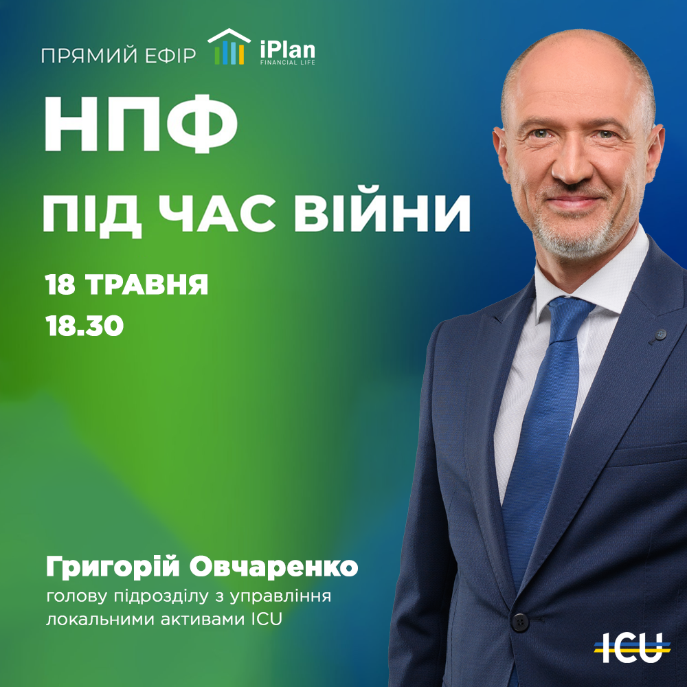 У середу, 18 травня, о 18:30 голова голову підрозділу з управління локальними активами ICU Григорій Овчаренко розповість про воєнні будні українських інвестиційних фондів в прямому ефірі @iplanua.
