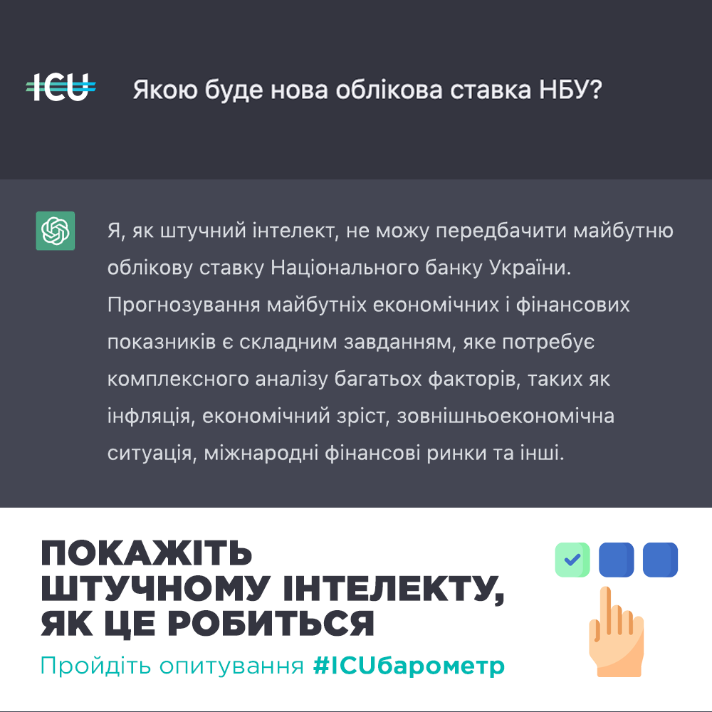 Питання, з яким не справляється штучний інтелект, але яке під силу нашій фінансовій спільноті - чи почне Нацбанк завчасно коригувати облікову ставку: https://bit.ly/BarometrMar23