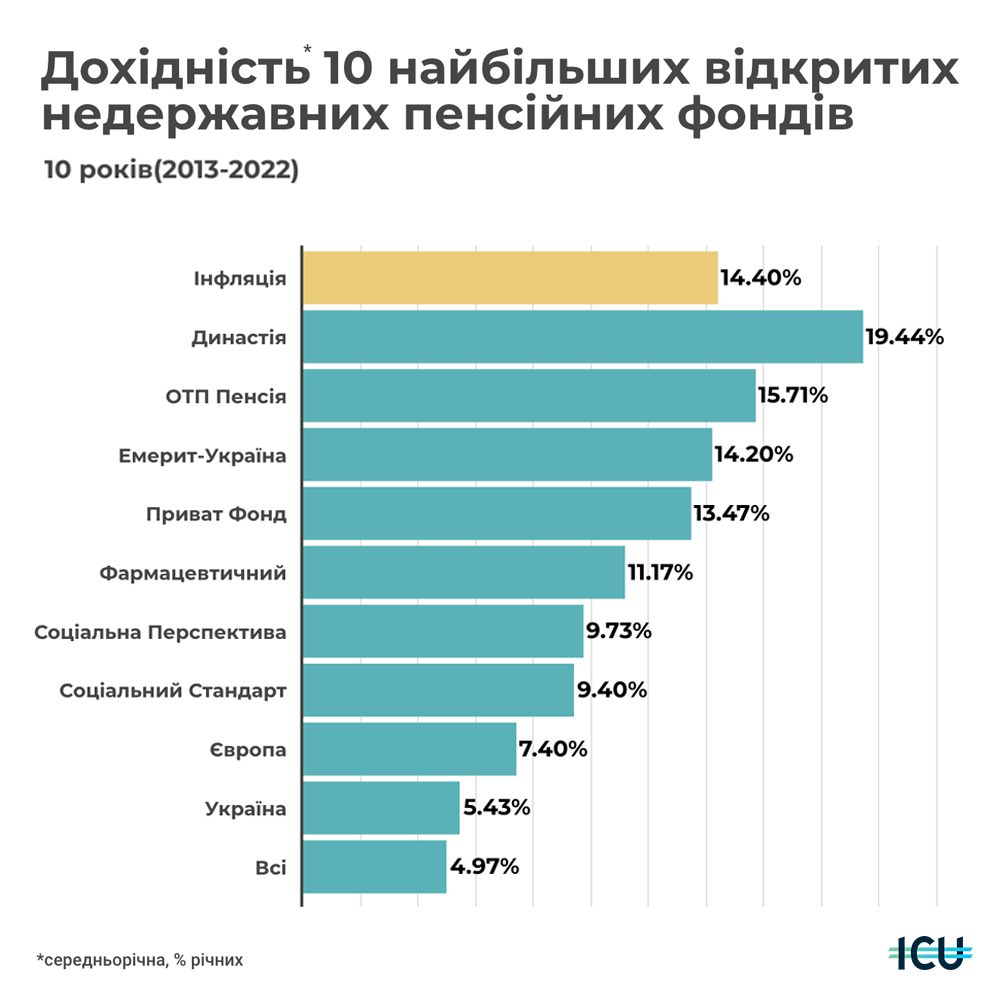 Інтерактивна інфографіка з дохідностями топ-10 відкритих НПФ України за 1-3-5-10 років доступна за посиланням: https://bit.ly/3TukIH8