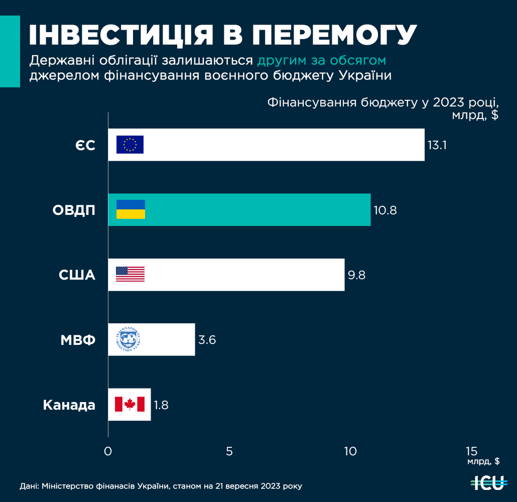 🧮 У 2023 році кошти, залучені від державних облігацій, є другим за обсягом джерелом фінансування воєнного бюджету України.