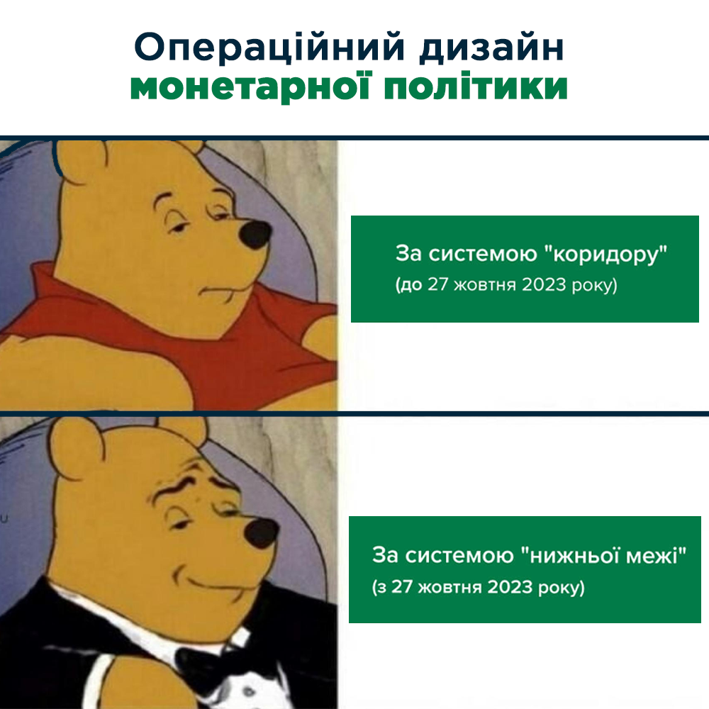 До вчора облікова ставка складала 20% й такою ж була ставка за (увага!) тримісячними депсертифікатами. За короткими овернайт інструментами ставка була складала 16%. Кредити рефінансу коштували 22% річних. Це була так звана система "коридору" (16%-20%-22%), посередині якого "стояла" облікова ставка 20%.