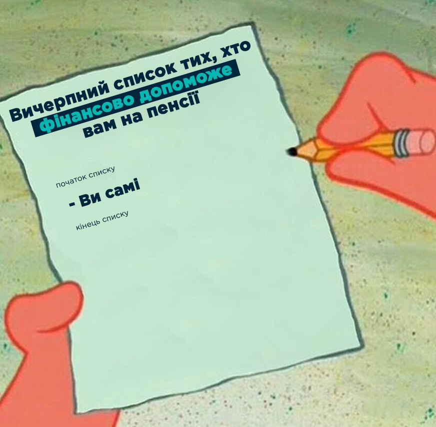 Перший крок до розв'язання проблеми - її усвідомлення. Отже, вихідна позиція - у вас або не буде державної пенсії, або ж вона буде надто малою, щоб забезпечити вам гідний рівень життя.