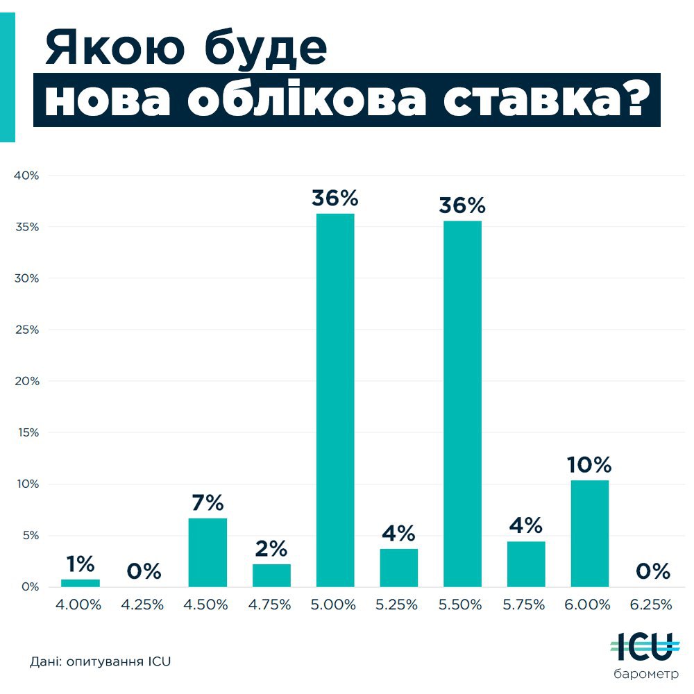 Стрілка #ICUбарометра цього тижня коливається - 70% опитаних розділилися між прогнозами зниження облікової ставки до 5.5% та 5%.
