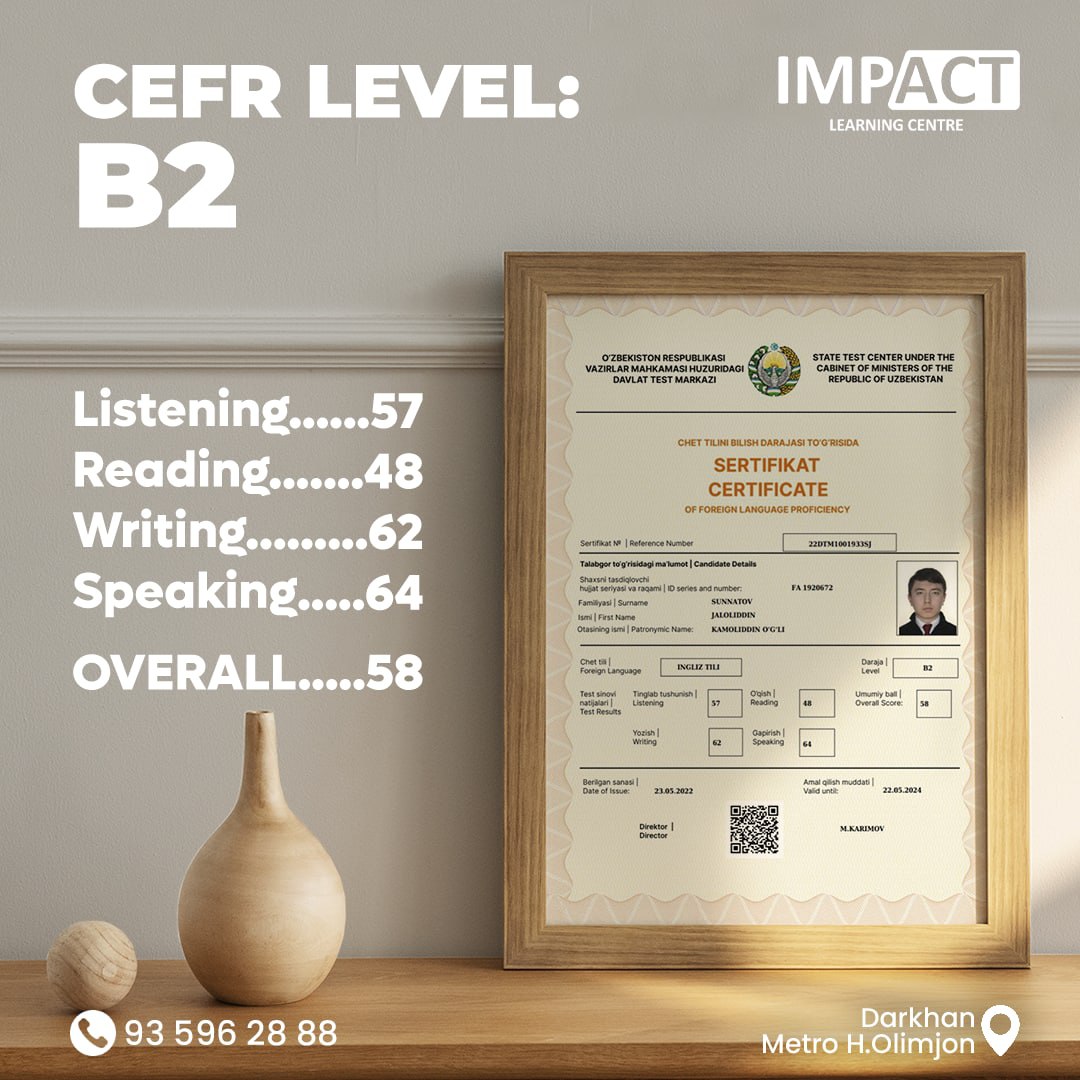 👨🎓 O'quvchilarimiz nafaqat IELTS balki CEFR da ham qolishmayabdi.