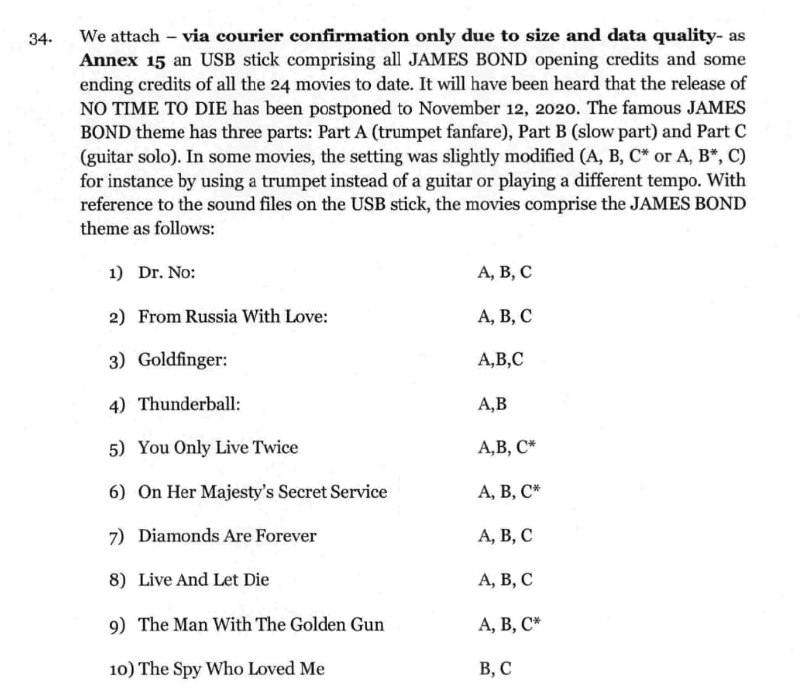 Изображение: фрагмент ответа Danjaq LLC на уведомление EUIPO с предварительным отказом в регистрации звукового товарного знака. Заявитель объясняет, из каких частей состоит музыкальная композиция и как они варьируются в разных фильмах бондианы. Подписано Rudolf Böckenholt, юристом Boehmert&Boehmert. Источник: euipo.europa.eu.