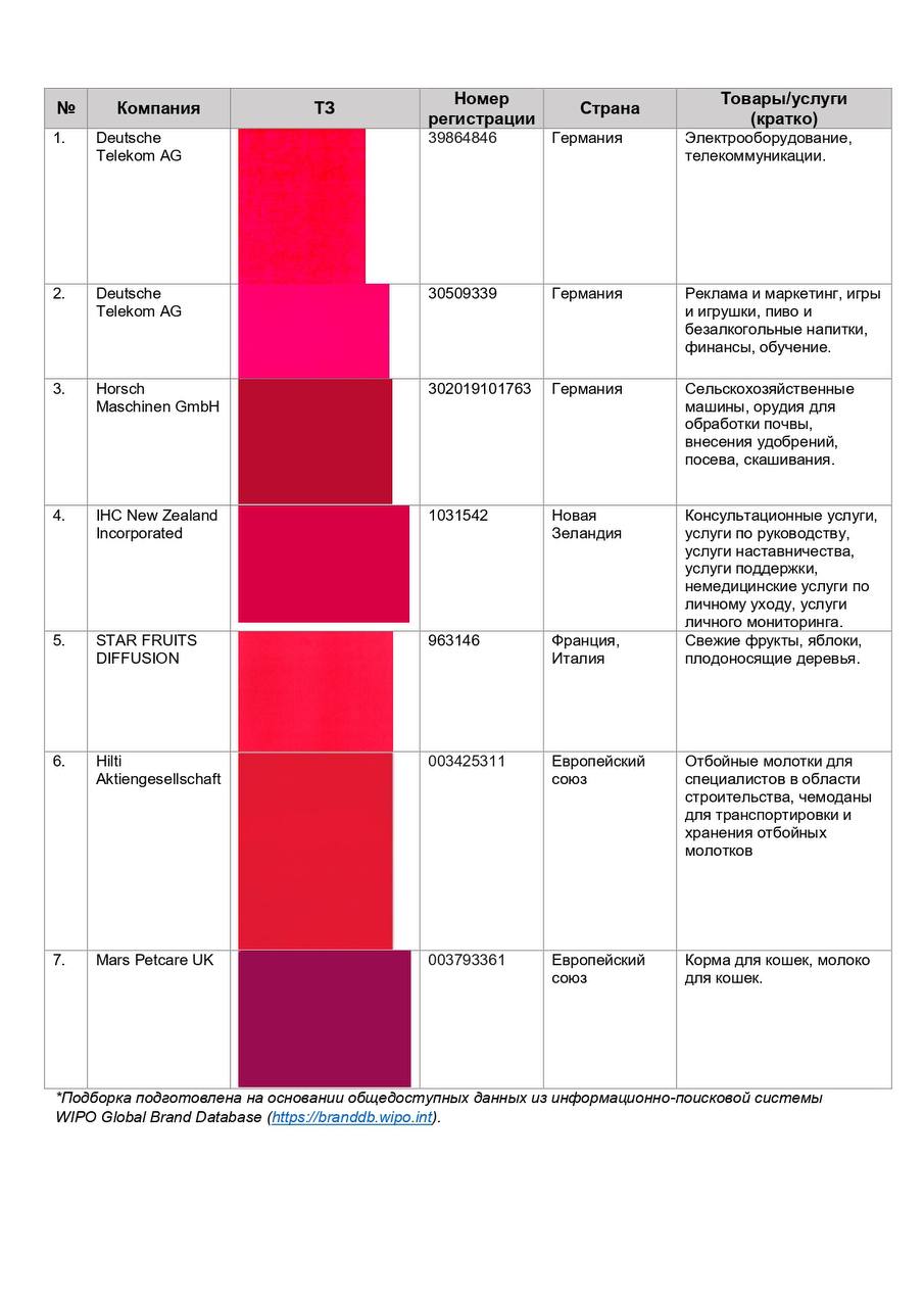 Мы подготовили небольшую подборку цветовых товарных знаков , схожих по оттенку с цветом Viva Magenta (в прикрепленном изображении ниже)