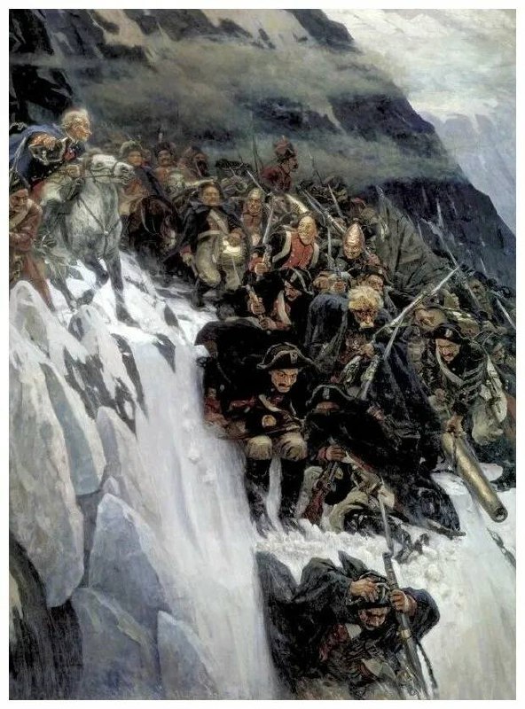 Переход русских войск под командованием фельдмаршала Суворова из Северной Италии через Альпы в Швейцарию, осуществленный с 10 сентября по 27 сентября 1799 г. За время этого беспримерного в истории войн горного перехода армия Суворова потеряла свыше 4 тысяч убитыми и ранеными, и нанесла вчетверо больший урон противнику. За Швейцарский поход Суворову было присвоено звание генералиссимуса, в Санкт-Петербурге на Марсовом поле был воздвигнут ему памятник.