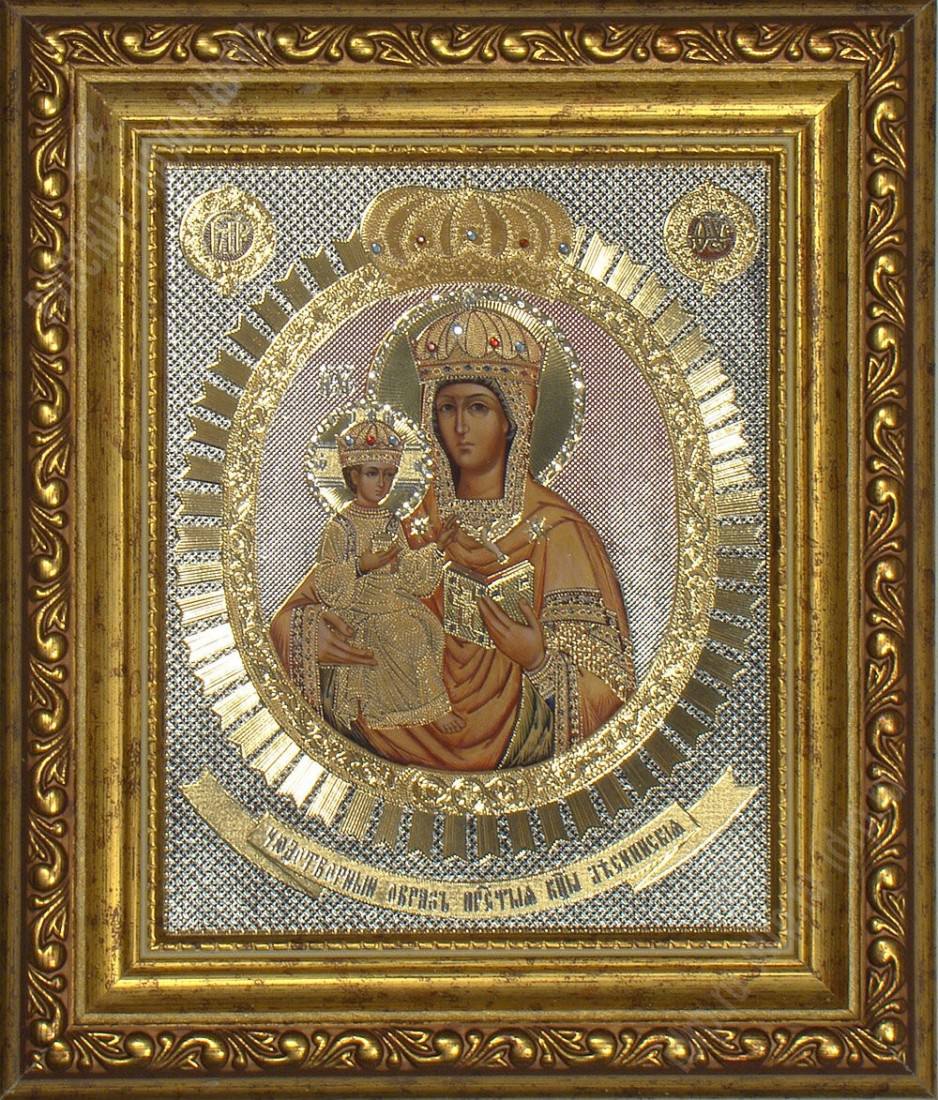Изображение этой иконы похоже на образ Казанской иконы Божией Матери.