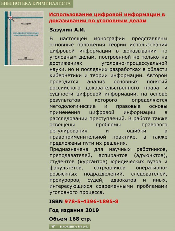 Я хочу поделиться хорошей новостью: издана моя монография про цифровые доказательства, это первая книга, написанная от корки до корки мной)).